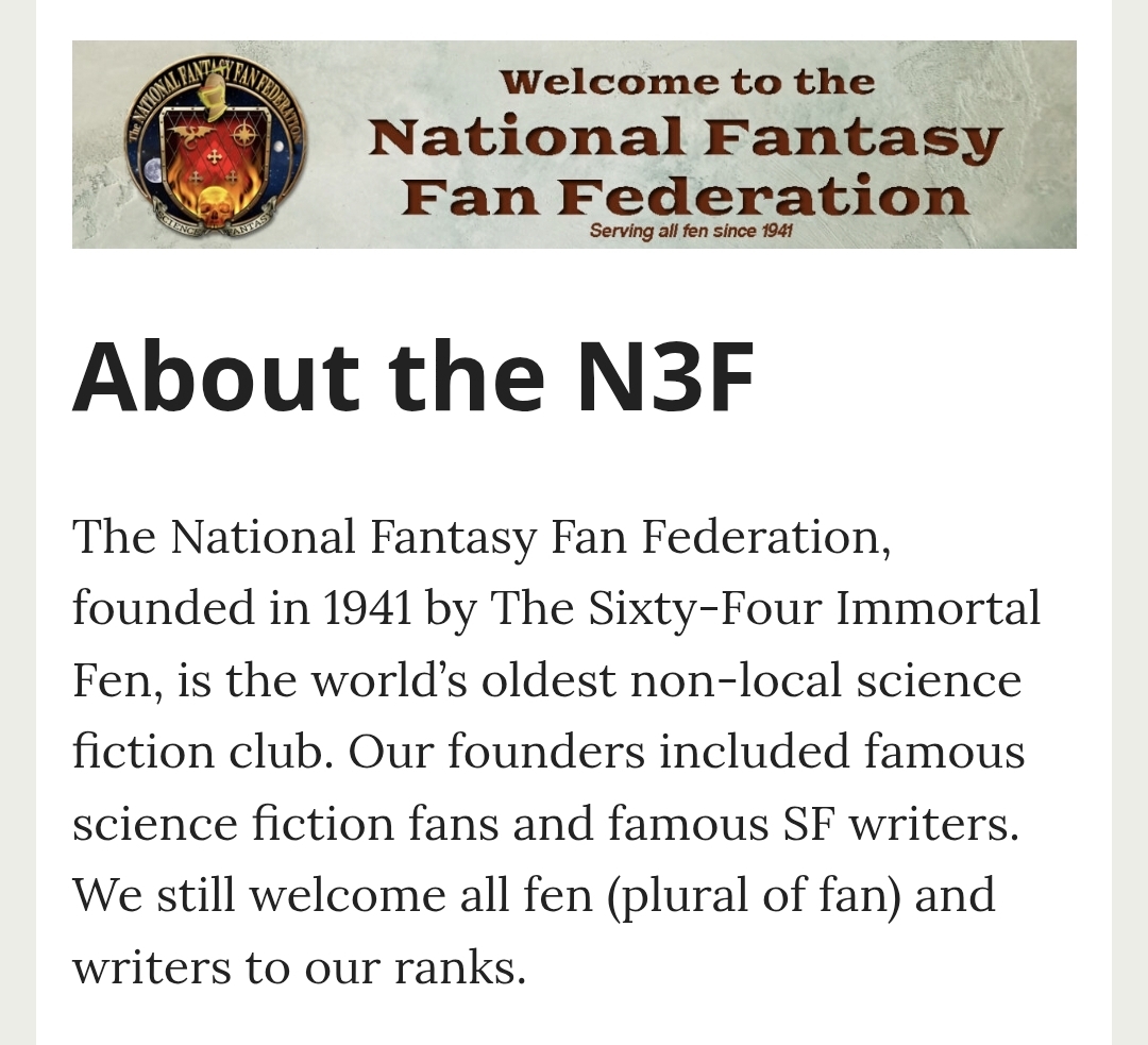 In de tweede week van januari 2026 kreeg ik een mail dat mijn verhaaltje ‘Time is a harsh mistress’ de tweede prijs heeft gewonnen in de jaarlijkse verhalenwedstrijd van de N3F – de oudste (1941!) SF-fanclub van de VS en zelfs ter wereld.